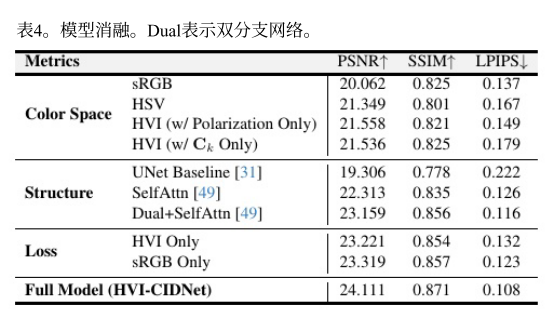 这篇文章在HVI部分的核心有一部分是为了更符合人眼观察,我觉得这是个很好的地方,因为现在好多没模型好像只是在单纯的数据上进行比较,其实跟人眼观察并不相同。