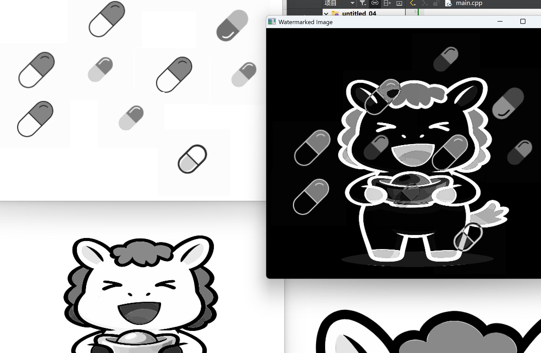 Mat watermarkImage = imread("D:/ljl/FPGA/QT_openCV_pro/pro_01/untitled_04/1.png", IMREAD_GRAYSCALE);