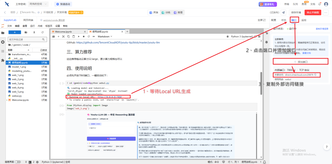 等待生成local URL,右侧添加端口7860。