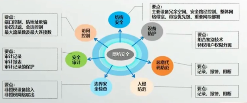 | 网络安全 | 不仅要满足网络安全运行的基本保障,同时还要考虑网络处理能力要满足业务极限时的需要 | 对网络处理能力增加了"优先级"考虑,保证重要主机能够在网络拥堵时仍能够正常运行 |