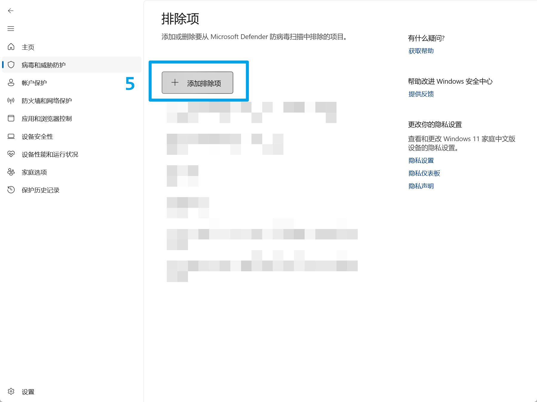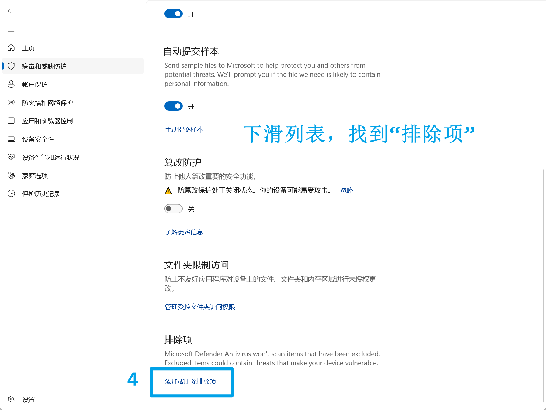 3.下拉列表,找到"排除项",选择"添加或删除排除项"