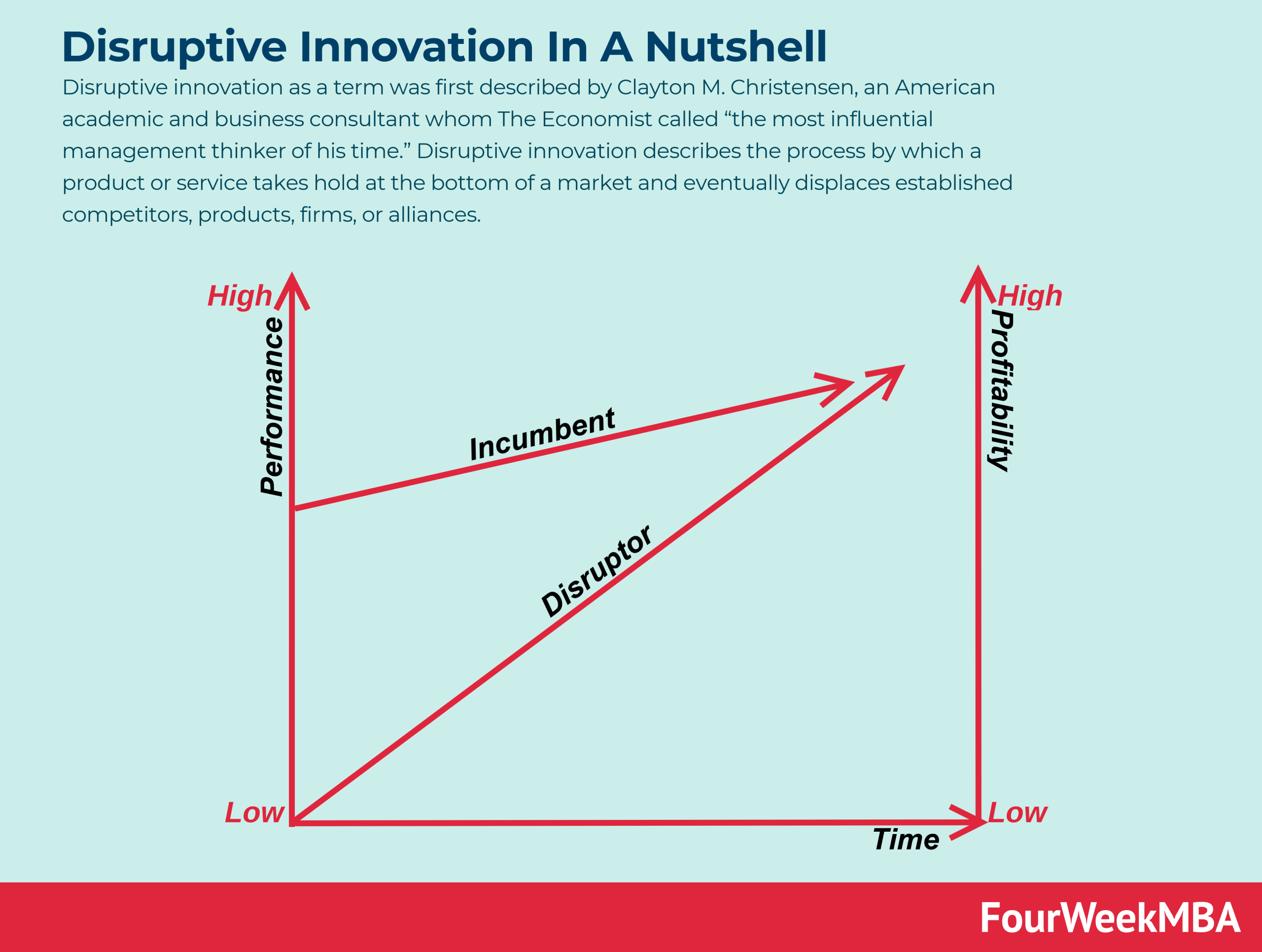 Disruptive innovation as a term was first described by Clayton M. Christensen, an American academic and business consultant whom The Economist called "the most influential management thinker of his time." Disruptive innovation describes the process by which a product or service takes hold at the bottom of a market and eventually displaces established competitors, products, firms, or alliances.