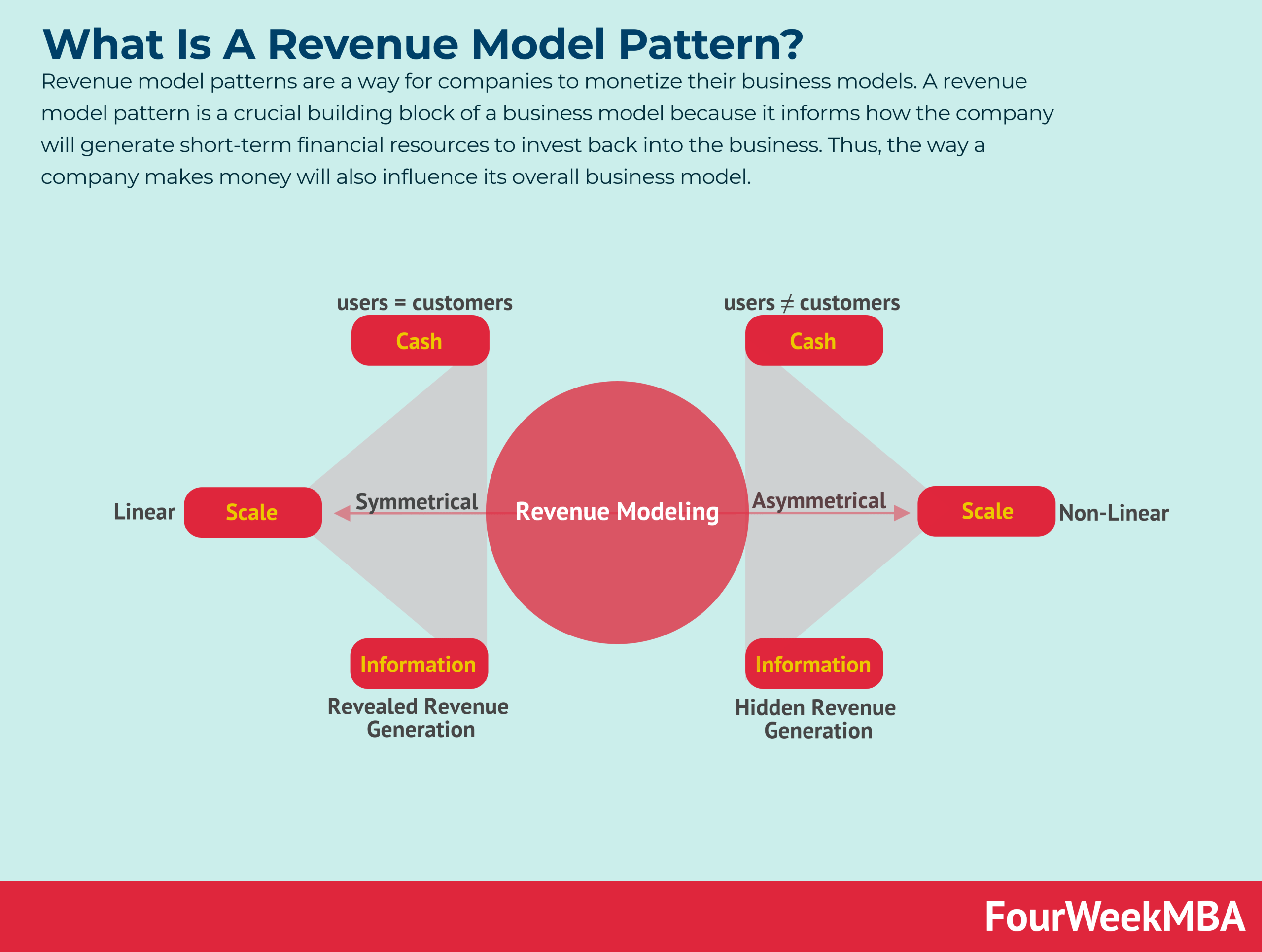 Revenue model patterns are a way for companies to monetize their business models. A revenue model pattern is a crucial building block of a business model because it informs how the company will generate short-term financial resources to invest back into the business. Thus, the way a company makes money will also influence its overall business model.