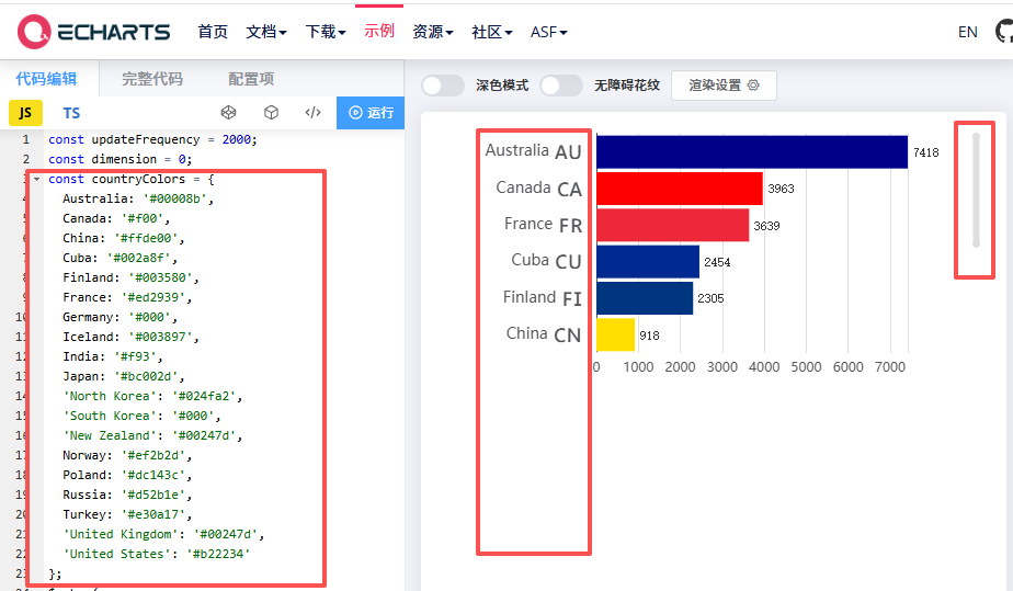 xAxis: { type: 'value' }, // 数值轴横向显示
