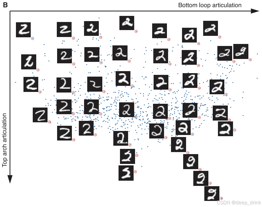 图 1 (B) 手写数字 '2' 的嵌入 :