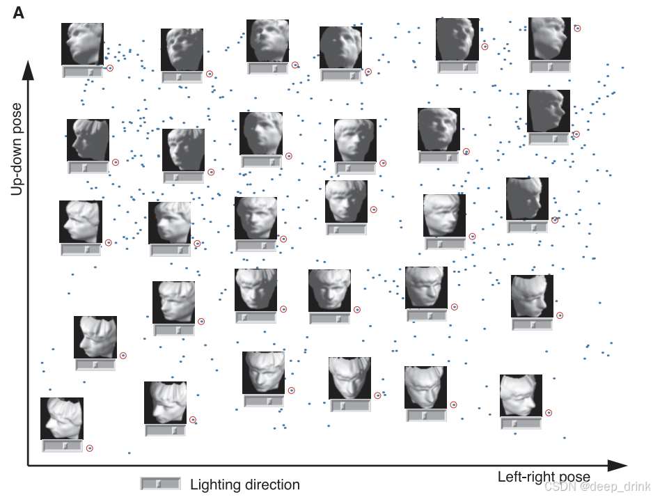 科学家经常面临处理大量高维数据的挑战,例如全球气候模式、人类基因分布或图像视频。以一张 64 × 64 64 \times 64 64×64 像素的人脸图像为例,它在数学上是一个 4096 维的向量( 64 2 = 4096 64^2=4096 642=4096)。然而,控制这一张人脸图像变化的物理变量(自由度)其实非常少,比如:上下转头、左右转头、光照方向。