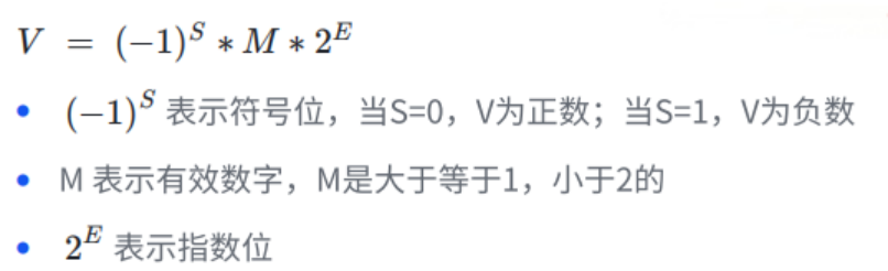 IEEE 754 标准规定,任意二进制浮点数 V 可表示为: