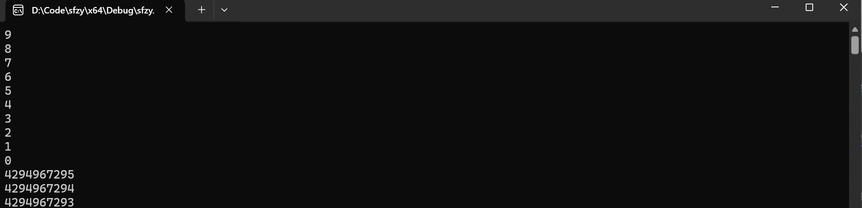 第二个代码,因 为unsigned int 的取值范围为 0 ~ 4294967295,最小值不可能为负数,所以循环不可能停止,-1的补码是11111111 11111111 11111111 11111111,如果是被%u 无符号整型的格式符解析,那么就会变成 4294967295,最后就会轮回一般输出。