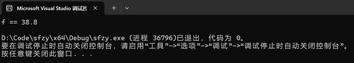 printf("f == 38.8\n");
