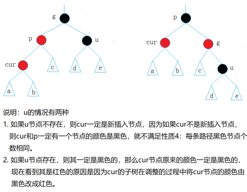 约定**:cur****为当前节点,p为父节点,g为祖父节点,u为叔叔节点**
