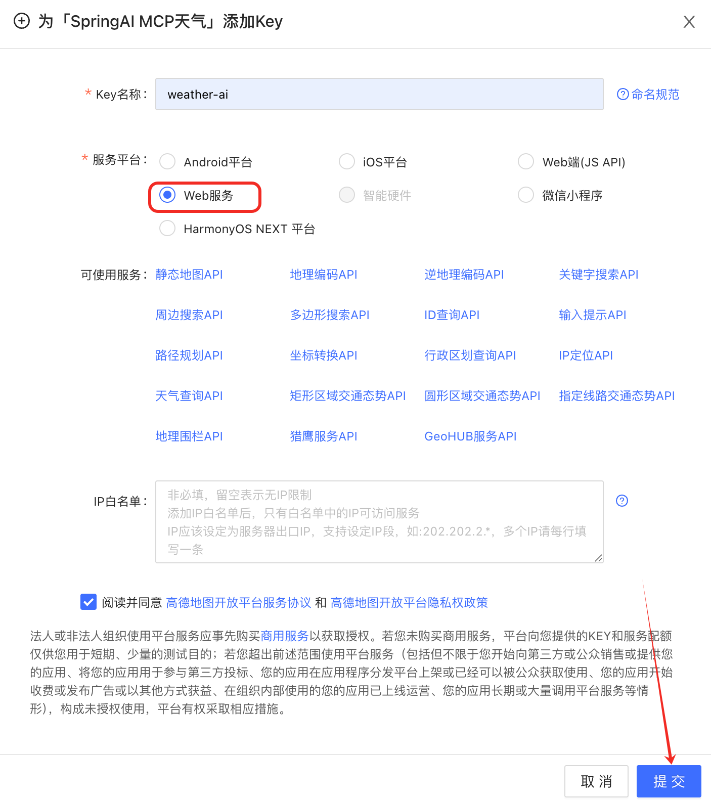 进入高德官网注册,创建key