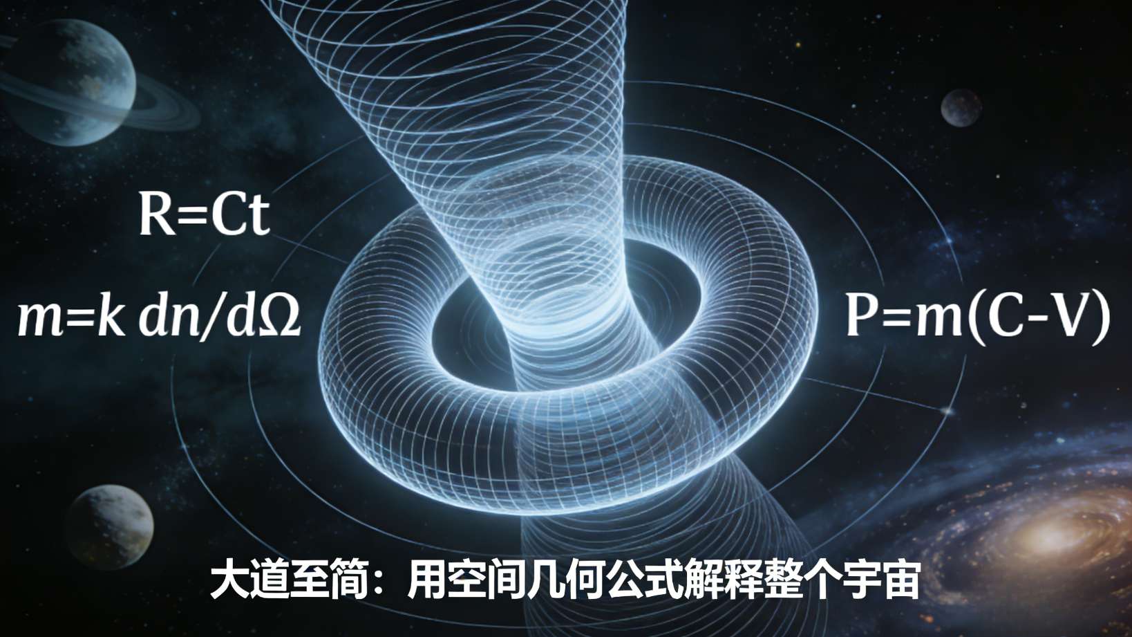 - 质量的几何化:在统一场论中,质量 m 不是内禀属性,而是物体对其周围空间光速螺旋运动"扰动程度"或"条数密度"的几何度量( m = k ⋅ d n / d Ω m = k \cdot dn/d\Omega m=k⋅dn/dΩ)。