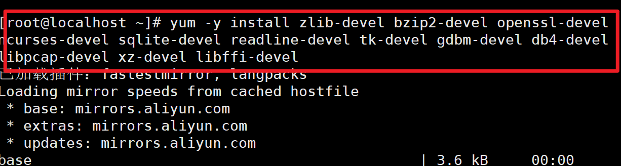 yum -y install zlib-devel bzip2-devel openssl-devel ncurses-devel sqlite-devel readline-devel tk-devel gdbm-devel db4-devel libpcap-devel xz-devel libffi-devel