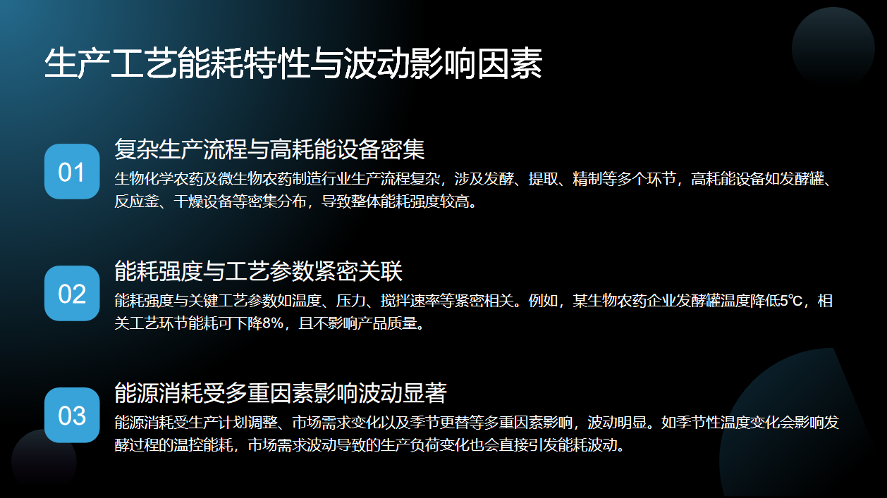 生物化学农药及微生物农药制造行业生产工艺能耗具备独特特性,且受多因素影响波动显著。该行业生产流程复杂,涵盖发酵、提取、精制等诸多环节,同时高耗能设备,如发酵罐、反应釜、干燥设备等分布密集,这直接导致了整体能耗强度居高不下。