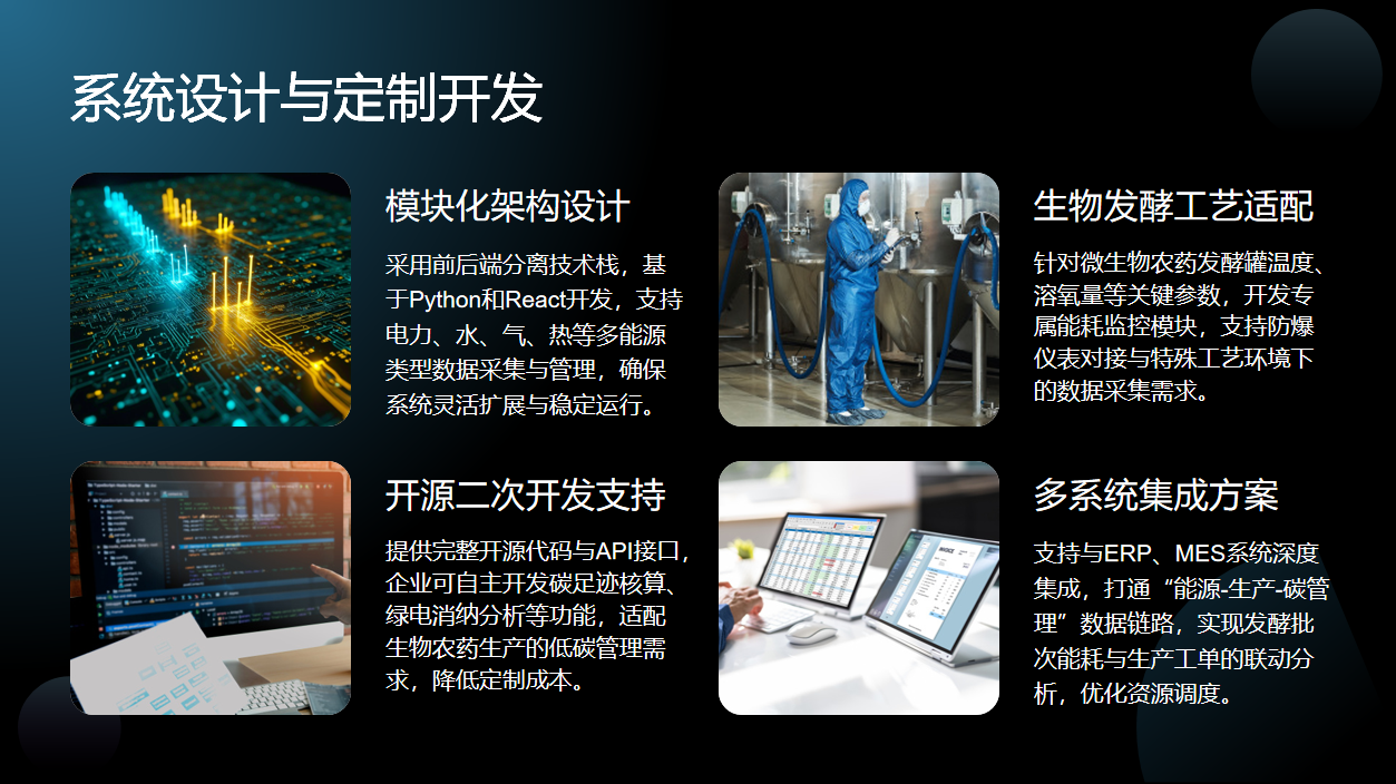 针对生物发酵工艺,开发专属能耗监控模块,适配微生物农药发酵罐的关键参数,支持防爆仪表对接和特殊工艺环境下的数据采集,精准满足了生物发酵的特殊需求。