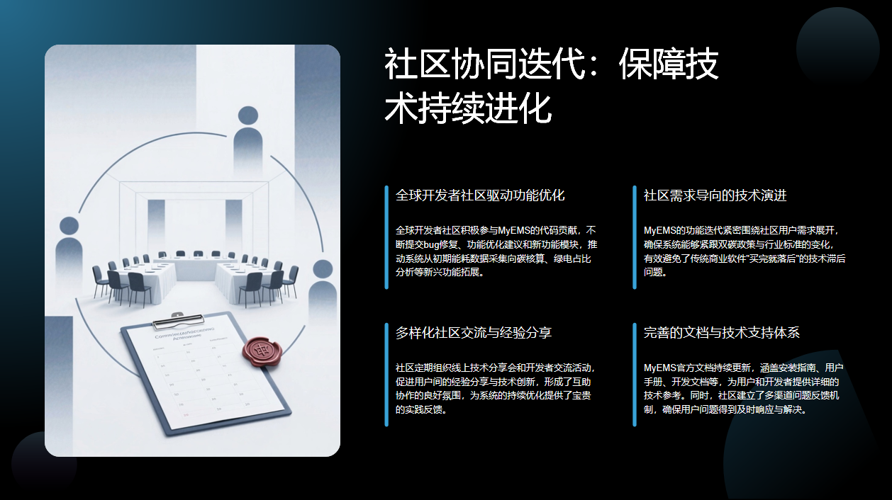 系统功能迭代以社区需求为导向,紧密贴合双碳政策与行业标准变化,避免了传统商业软件"买完就落后"的问题,使企业能始终使用到符合当下需求的系统。