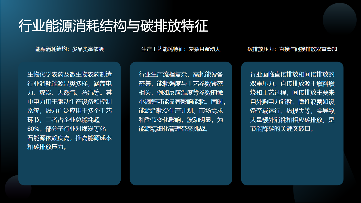 双碳政策下,生物化学农药及微生物农药制造行业既面临转型压力,也迎来发展机遇。政策要求行业降低能耗与碳排放强度,满足能耗双控、碳排放核算与披露等合规要求,这给行业带来了直接的政策压力。