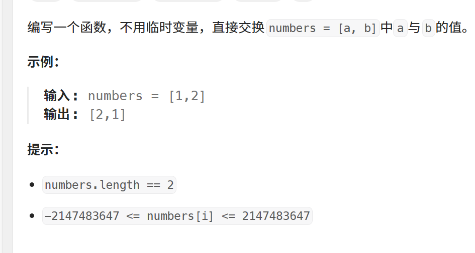 题目链接:面试题 16.01. 交换数字 - 力扣(LeetCode)
