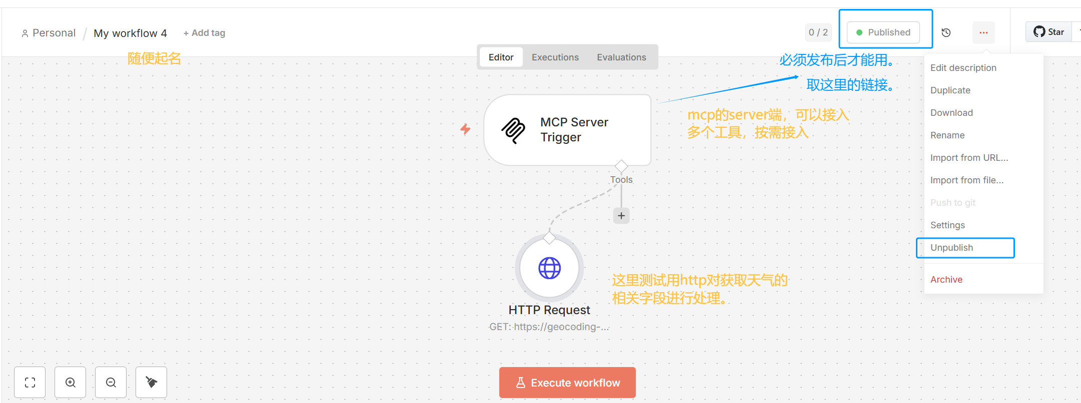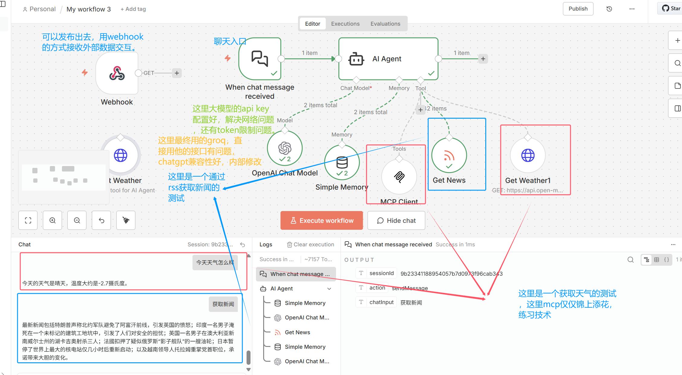 mcp server的一个练习工作流,这里的描述不够准确导致调用一直和chat交互:My workflow4.json