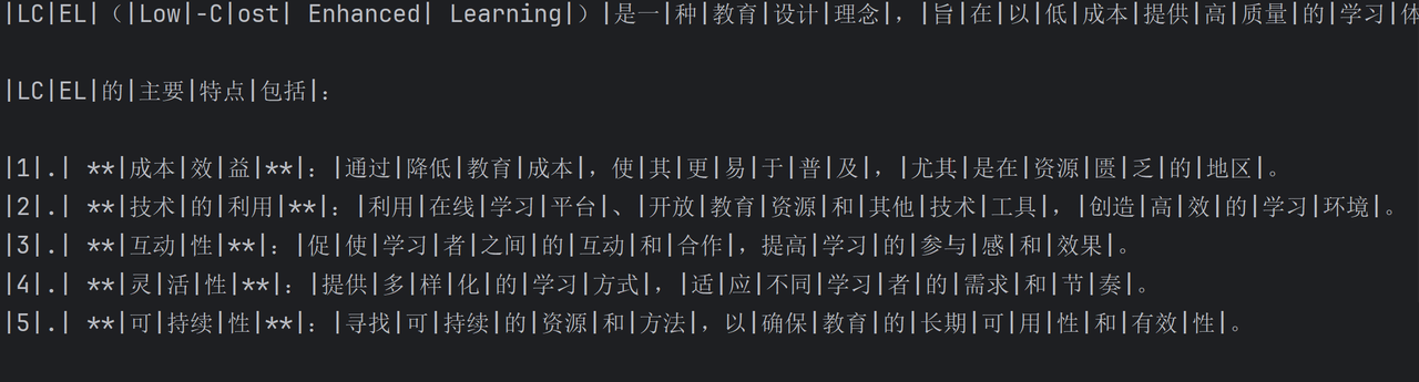 print(chunk.content, end="|", flush=True)