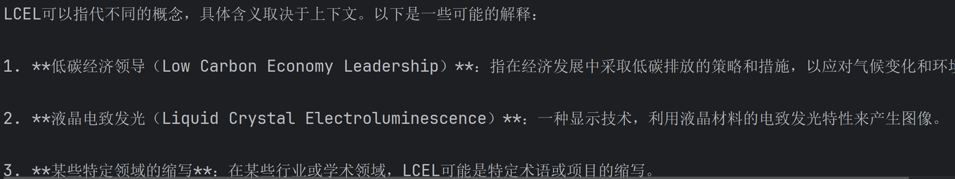 # print(model.invoke("解释下什么是LCEL"))