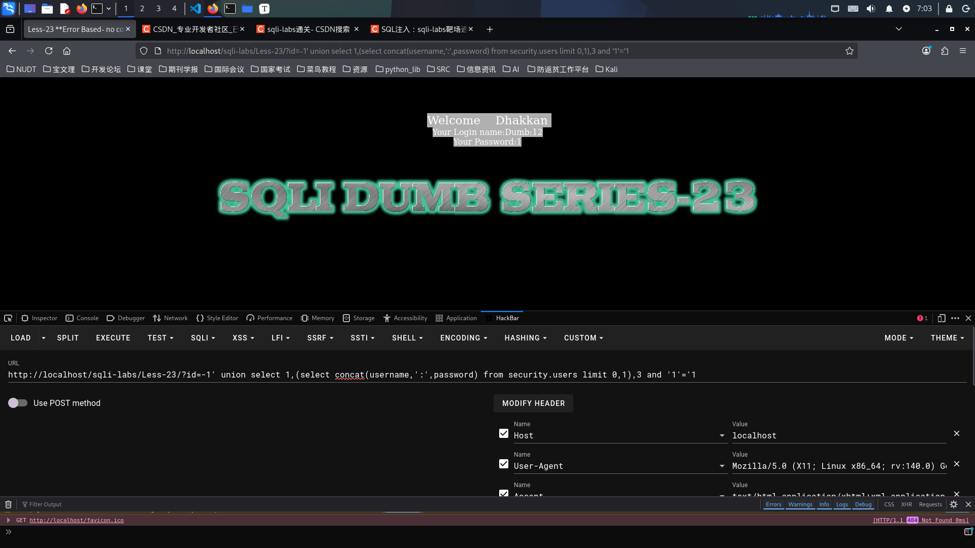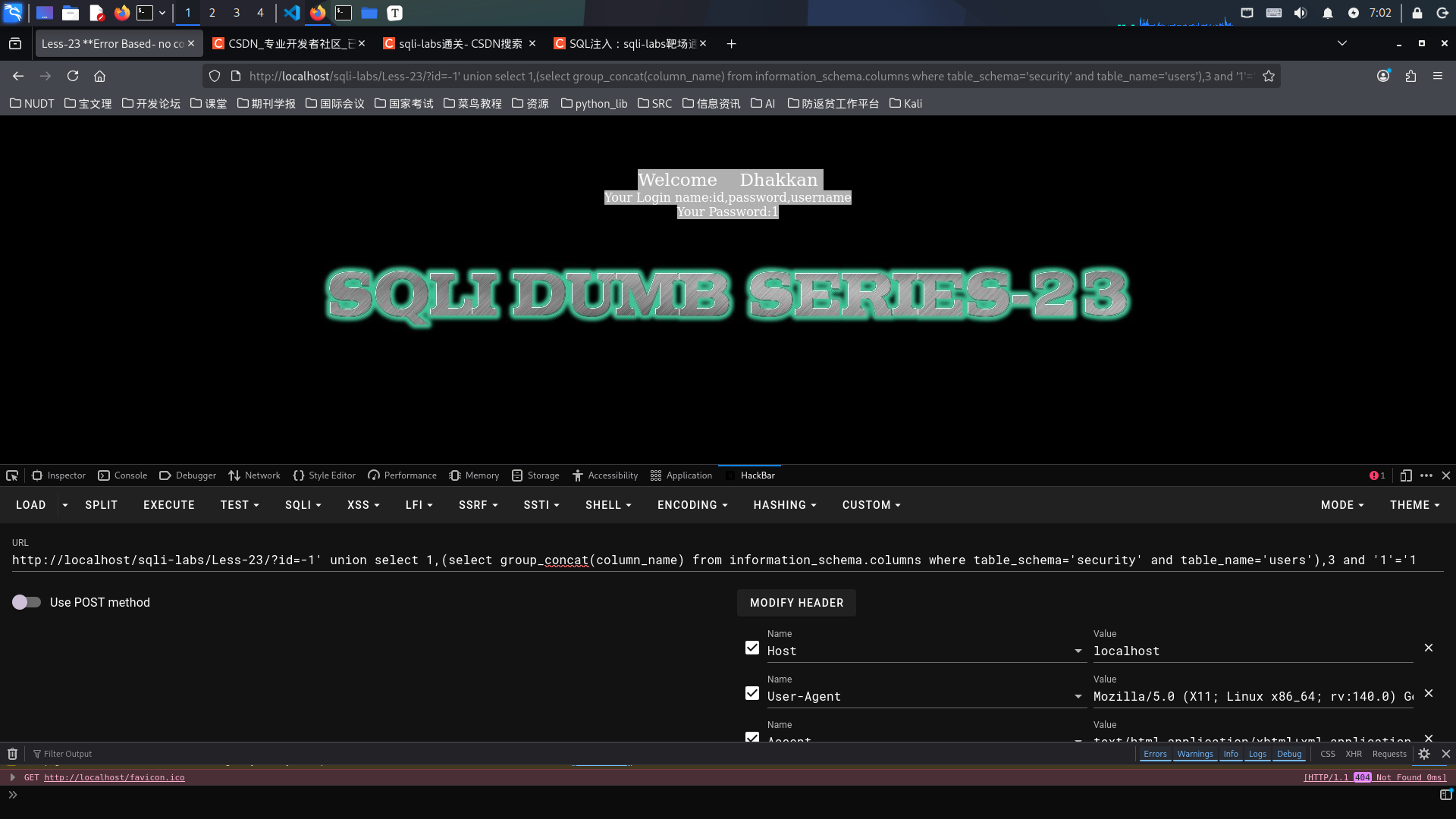 这一关又回到了get注入方式,与之前的关卡不同的是,这一关采用了过滤"#"、"--"符号,导致之前所使用的注释符无法起到作用。破解的基本思路是构造一条特殊查询语句,使得SQL语句起到想要的效果。
