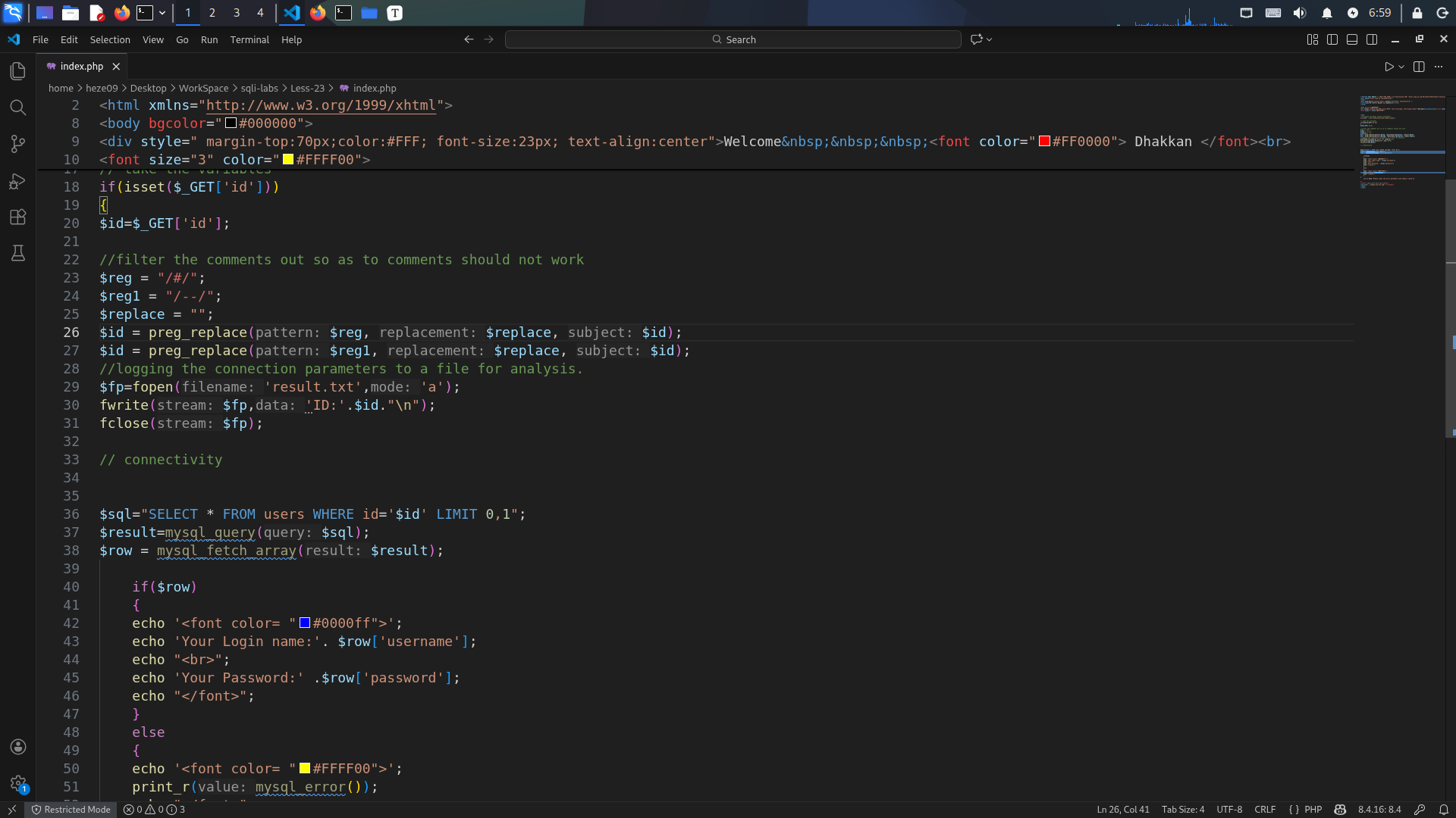 查询原代码之后发现,过滤了"#"与"--",使得原先的注释符不起作用,但同时,我们也发现了SQL查询语句,通过构造特殊的查询语句,也可以达到想到的效果。