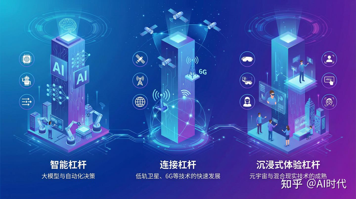 这三大杠杆并非孤立运作,而是相互叠加、相互强化。智能系统可以通过无处不在的连接获取更多数据,而沉浸式体验则为智能系统提供了更丰富的应用场景。三者的结合,将产生远超单一杠杆的指数效应。