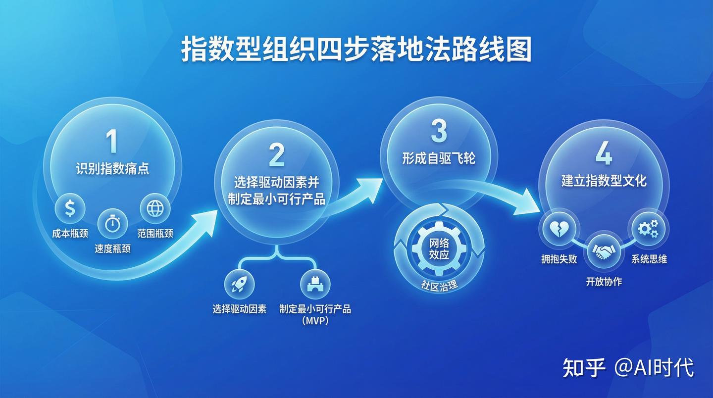 第一步是识别"指数痛点"。 组织需要从成本、速度与范围三个维度审视当前的瓶颈。哪些环节的成本可以通过技术杠杆大幅降低?哪些流程的速度可以通过自动化与并行化显著提升?哪些业务的范围可以通过网络效应实现指数级扩展?找到这些痛点,就是找到转型的切入点。