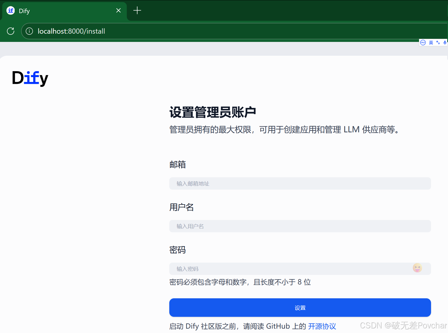 根据提示设置用户名和密码。