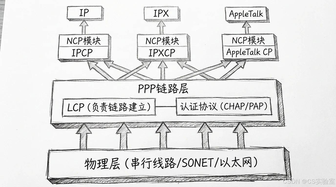 PPP并非单一协议,而是一个协议簇。它通过分层设计,实现了良好的扩展性和灵活性。