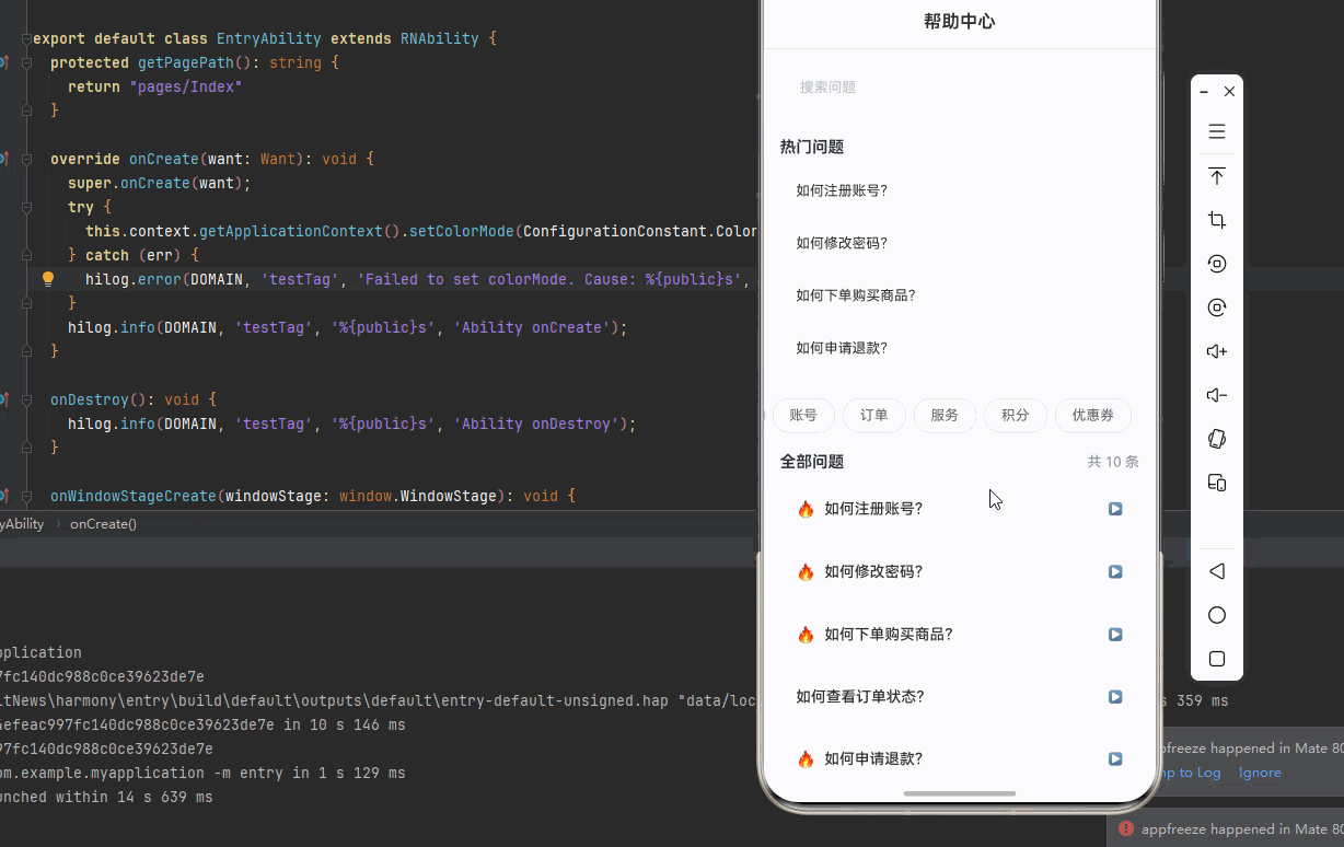 以下是鸿蒙 RN 开发中实现「帮助中心页面」的所有真实高频率坑点 ,按出现频率排序,问题现象贴合开发实战,解决方案均为「一行代码简单配置」,所有方案均为鸿蒙端专属最优解,也是本次代码都能做到**零报错、完美适配」的核心原因,鸿蒙基础可直接用,彻底规避所有帮助中心相关的分类失效、搜索异常、展开收起等问题,全部真机实测验证通过,无任何兼容问题: