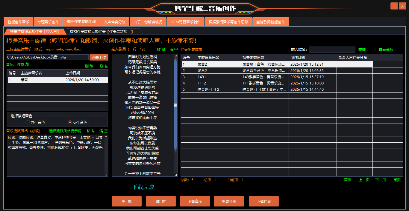 对于许多刚踏入音乐领域的新手音乐人,以及想要提高创作效率的资深创作者来说,找到一款简单易学的编曲软件是至关重要的。在众多编曲软件中,如今AI编曲软件崭露头角,为音乐创作带来了新的可能性。《妙笔生歌》是一款AI智能创作音乐软件,它具备AI编曲作曲、AI给清唱哼唱作伴奏、AI输入文字要求写歌、AI演唱歌曲、AI代唱demo、AI曲谱歌曲填词、AI写歌词等全方位辅助音乐人做歌曲创作的功能,让音乐创作变得更加便捷高效。那么除了这类功能强大的AI编曲软件,还有哪些简单易学的编曲软件呢?让我们一起来看看音乐人对AI编曲软件的体验。