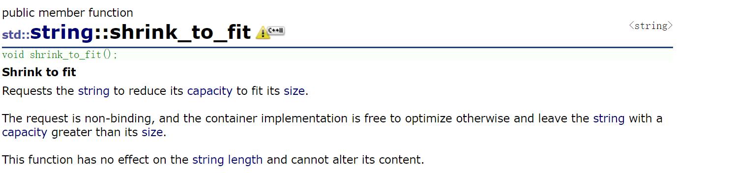 s的size本来为18,调整为10后,capacity并没有改变,因为缩容也是有代价的,因为C/C++内存管理不支持一段一段进行管理