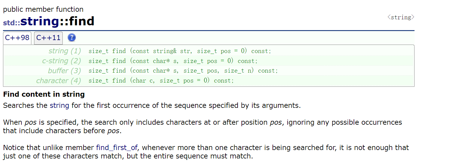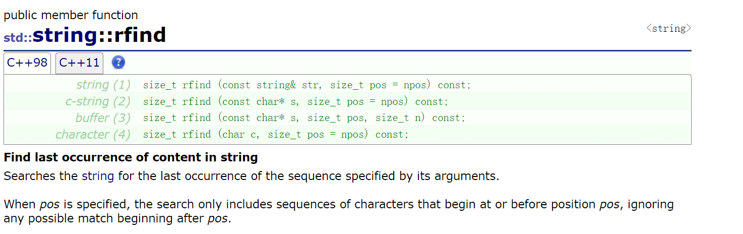 if(pos!=string::npos)//npos是string的静态局部变量,可以通过类域访问,size_t的npos是2^32-1(32位下),int的话是-1