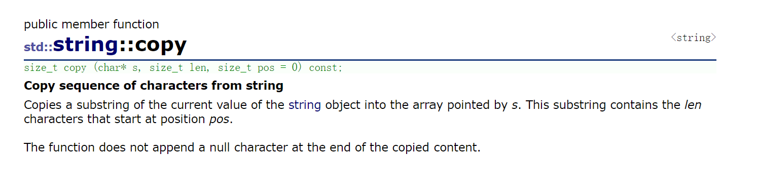 s1.copy(buffer, pos, len)把s1第pos个位置开始的len长度个字符拷贝给buffer,注意拷贝完的buffer默认没有'\0'