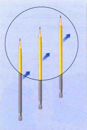 解决孔径问题的方式有两种,一种是对物体末端作反应,比如对笔头的感知,如图3所示。显然,对于笔头所在的感受野,水平运动和倾斜运动的感知是不同。Pack等人(Pack,Livingstone,Duffy和Born,2003)就在纹状体皮质中发现了一种只对移动物末端反应的神经元。另外一种就是,颞中区的细胞汇聚了很多来自于纹状体细胞的输出信号,它可对更大的感受野反应(Rust,Mante,Simoncelli和Movshon,2006),当该感受野囊括了整个物体时,就能很好的解决孔径问题(Bruno和Bertamini,2015)。