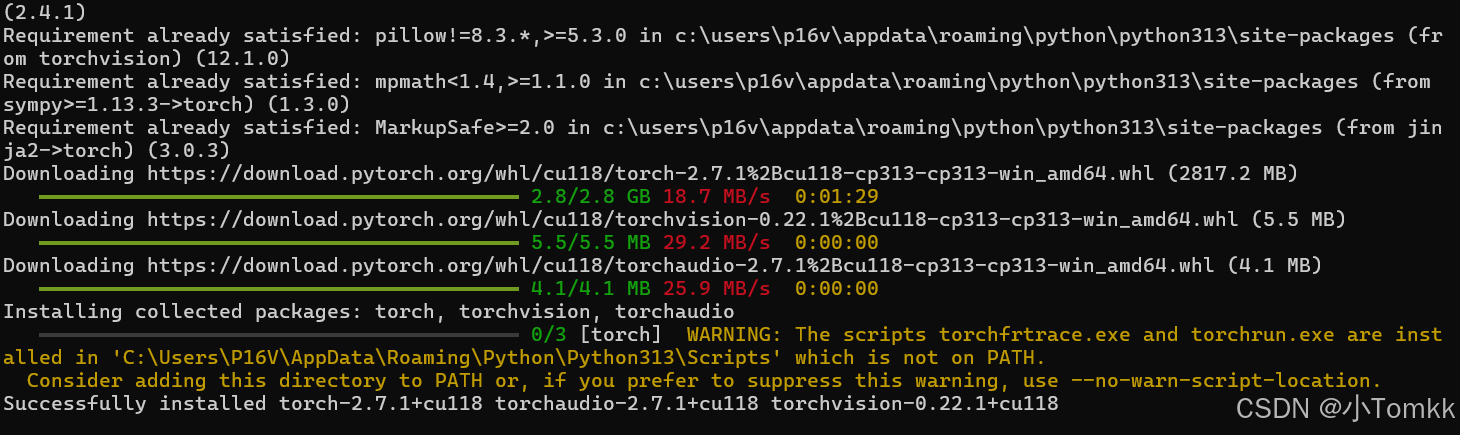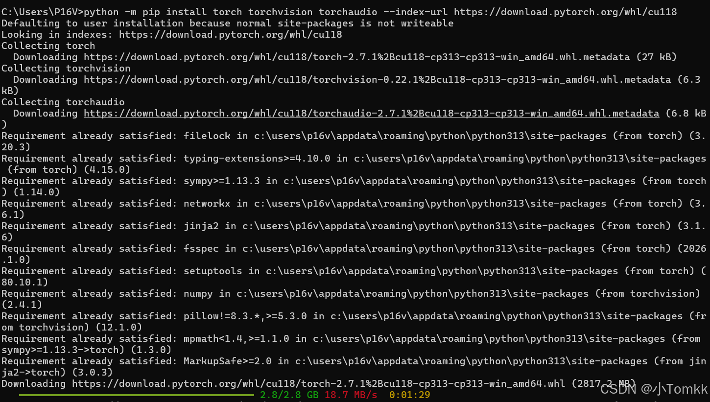 pip install torch torchvision torchaudio --index-url https://download.pytorch.org/whl/cul18