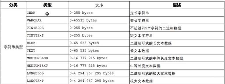注意:在sql中,字符串的类型是varchar,如果写varchar(50),就代表该字符串大小是50