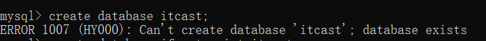 那如果再重复创建已存在的itcast,则会报错error