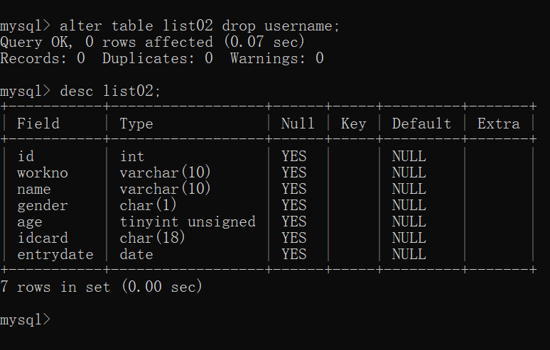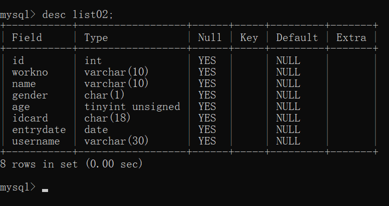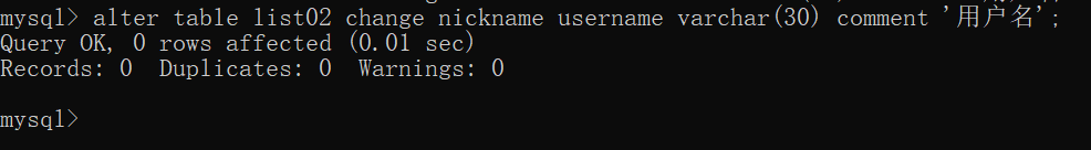 那是否修改成功?来验证一下(通过desc 表名):