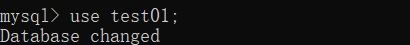 比如说我这时候想要使用test01这个数据库,输入指令后显示Database changed 代表此时已经切换到了test01这个数据库。