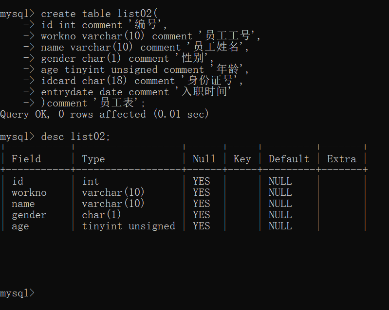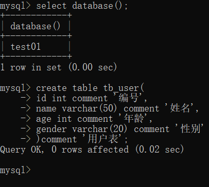 (本节的mysql的DDL语句都是在mysql的命令行中演示的!)
