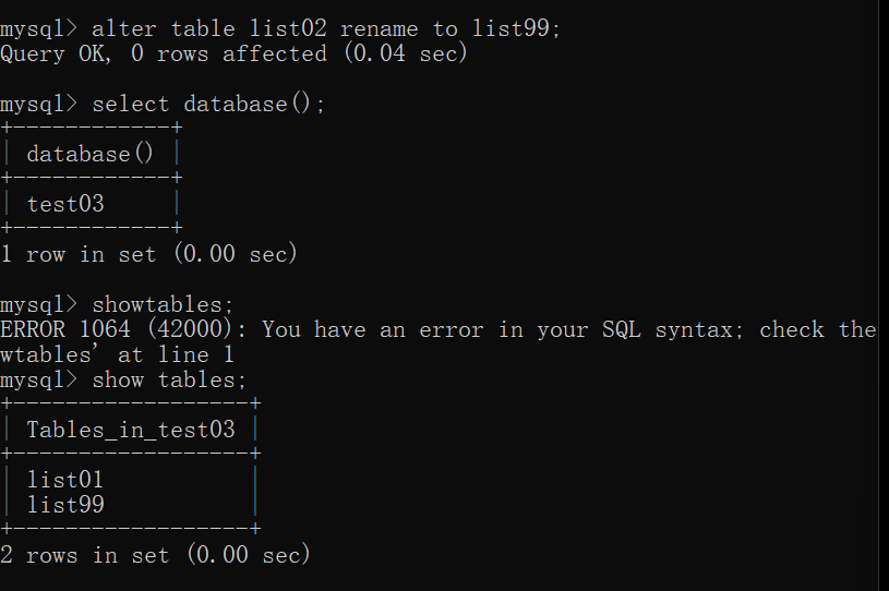 将list02这个表名修改成list99