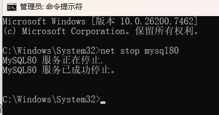 启动是net start mysql80 停止是net stop mysql80