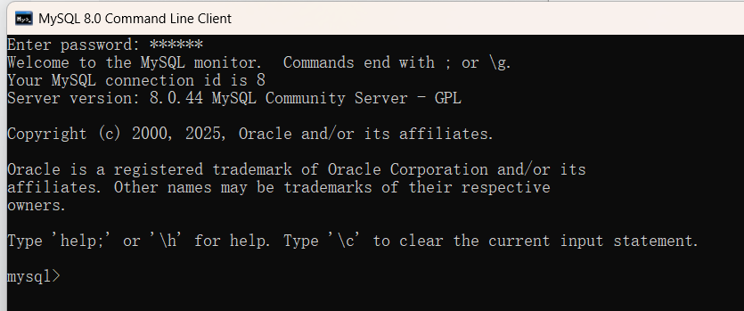 由上图的第4行可知这个已安装的mysql是 社区版本的8.0.44