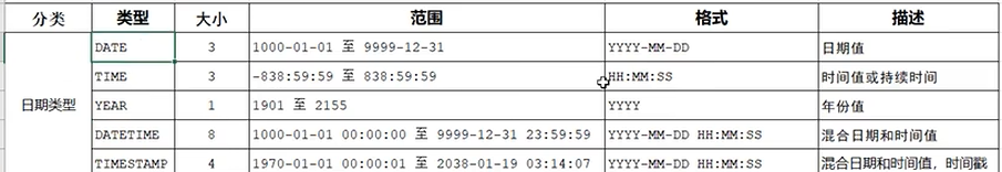 所以一般比较常用的就是 date time datetime