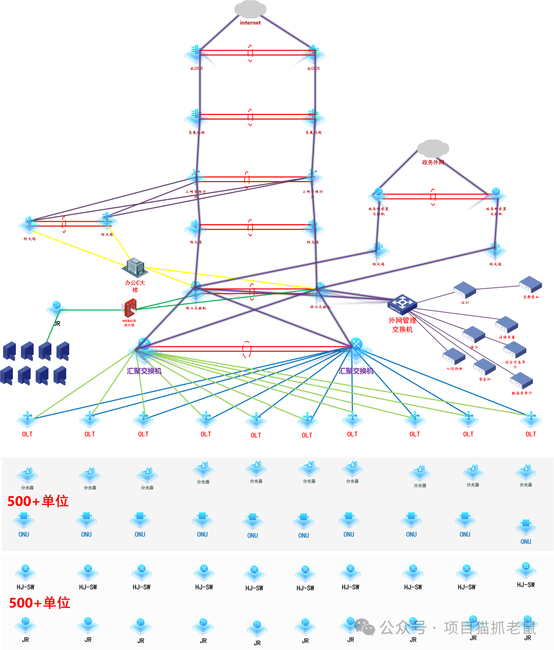 架构成熟,层次分明,符合大型企业网络标准;