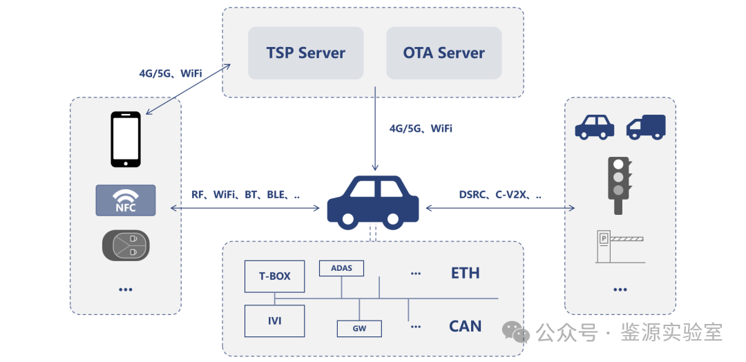 在很多人的认知里,汽车安全往往等同于刹车是否可靠、控制是否稳定,或者再进一步,是否存在车内 CAN 总线、ECU 被攻击的问题。但在我们长期参与汽车信息安全测试与评估的过程中,一个变化越来越明显------真正暴露风险最多的,往往不是"车内",而是"车外"。