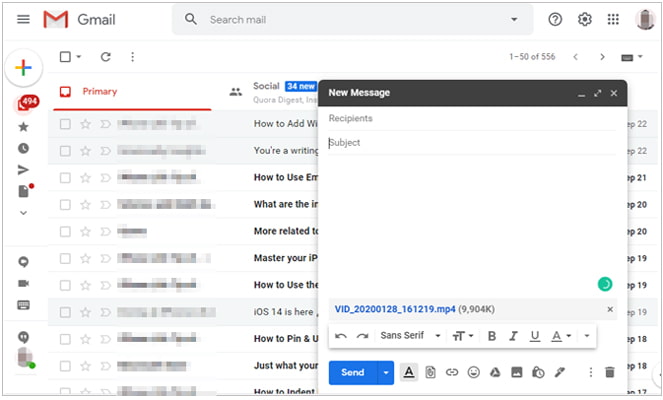 最后,您还可以通过电子邮件将视频从 PC 发送到Android 。如果您无法使用其他方法将视频从PC传输到Android ,您可以尝试这种方式。请注意,大多数电子邮件供应商将附件的大小限制为 25 MB,例如 Gmail。如果您的单个视频文件大于此值,则无法将其从计算机通过电子邮件发送到Android 。